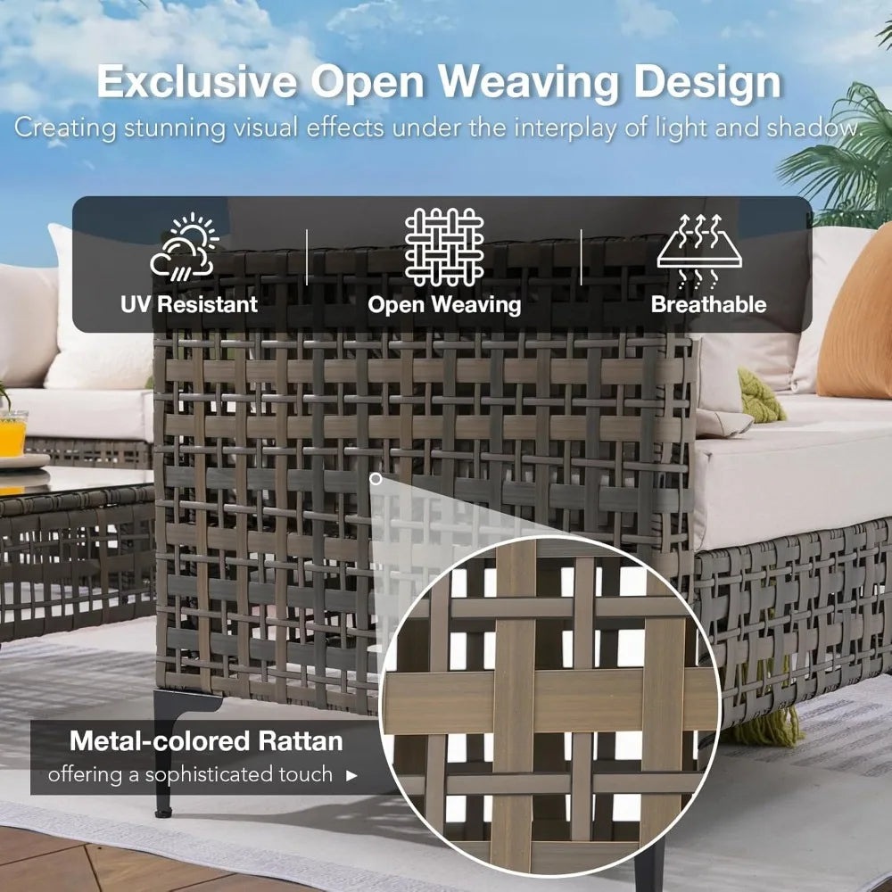 7 Piece Wicker Patio Furniture Set, Water Resistant